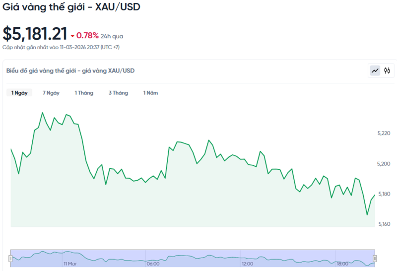 Giá vàng thế giới hôm nay 12/03/2026 và biểu đồ biến động giá vàng thế giới 24h qua