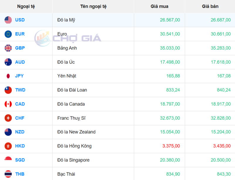 Ngân hàng ABBank, Bảo Việt, LPBank, MSB, MB, NCB, PublicBank, Sacombank, VCBNeo, VietBank, VPBank đang bán chuyển khoản Đô la Mỹ với giá cao nhất là: 1 USD = 26.388 VND