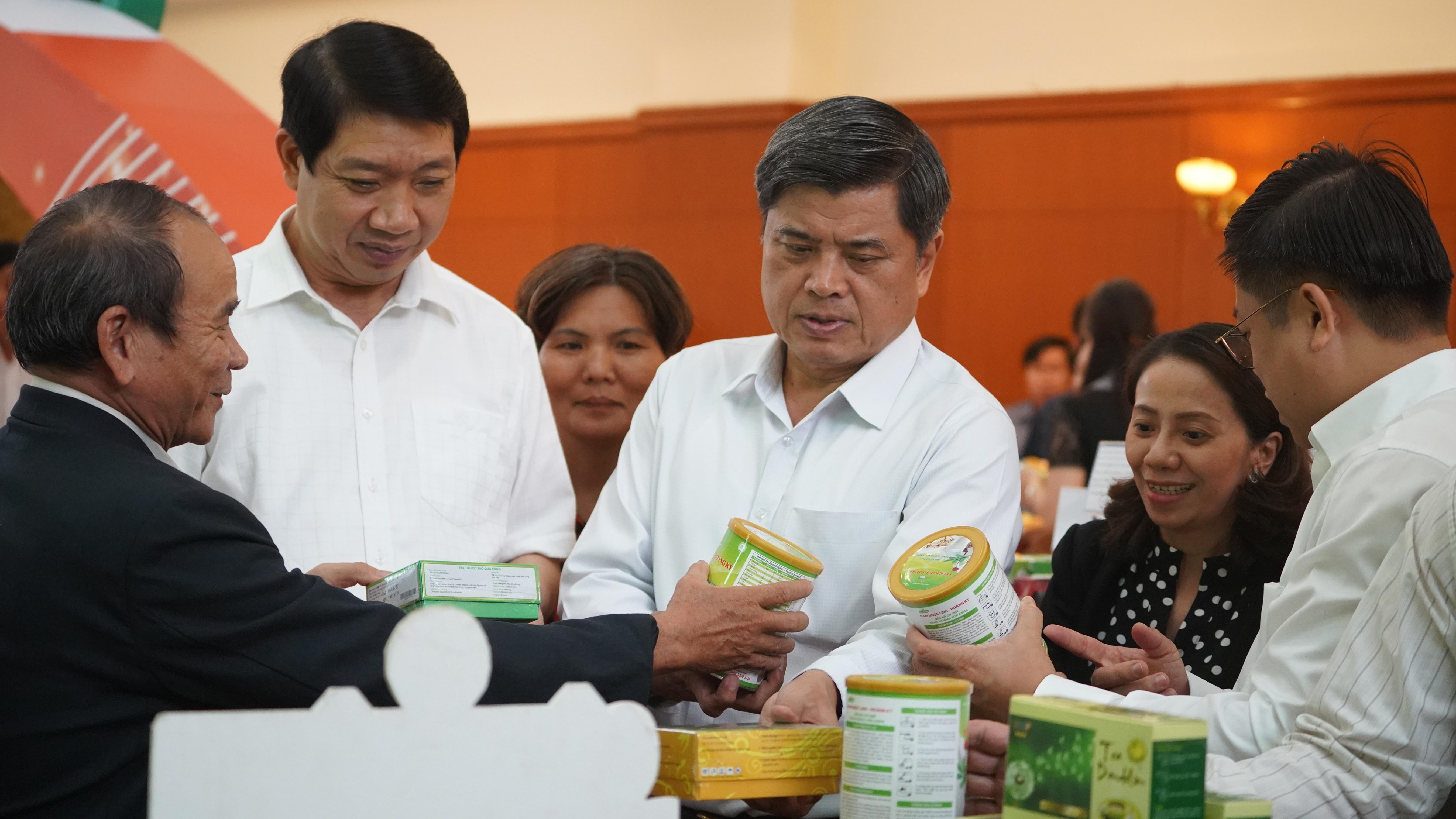 Triển lãm các sản phẩm nông nghiệp hữu cơ bên lề hội thảo.
