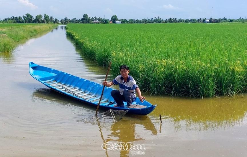 Mô mình canh tác luân canh tôm – lúa hạn chế ô nhiễm môi trường, thích ứng với biến đổi khí hậu. Ảnh: baocamau.com.vn