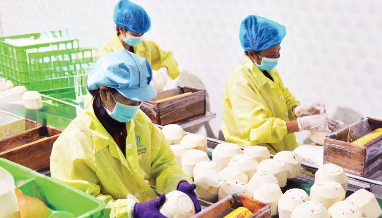 Đóng gói dừa xuất khẩu tại doanh nghiệp trên địa bàn tỉnh Vĩnh Long. (Ảnh: MINH ANH)
