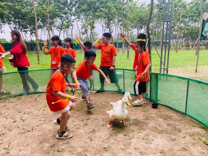 Các em nhỏ tham gia hoạt động trải nghiệm tại Công viên xanh Phù Đổng (trung tâm Gia Lâm).