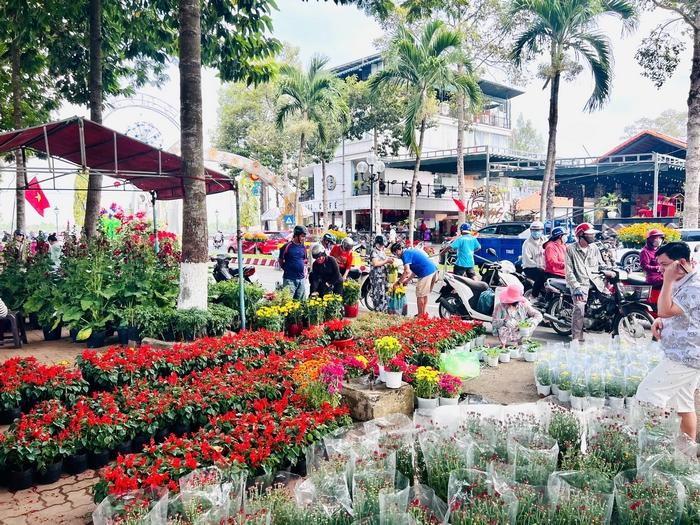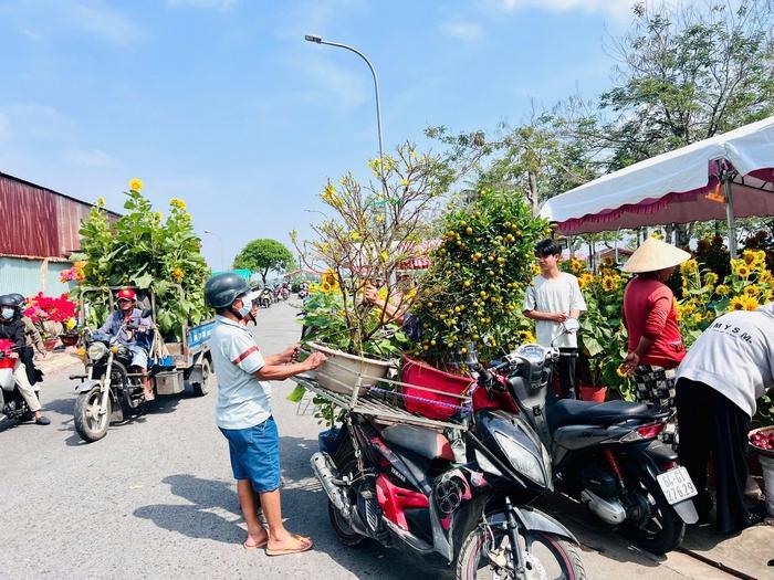 Tầm 10 giờ, các lô hoa kiểng dọc bờ kè Phường 9 tấp nập người mua hoa, “rinh Tết về nhà”. Nhiều người cho biết “đi chợ giờ chót để có thể mua được những chậu hoa đẹp với giá cả phải chăng”. Theo đó, những mặt hàng bán chạy nhất là mai vàng, hoa giấy, cúc vàng…