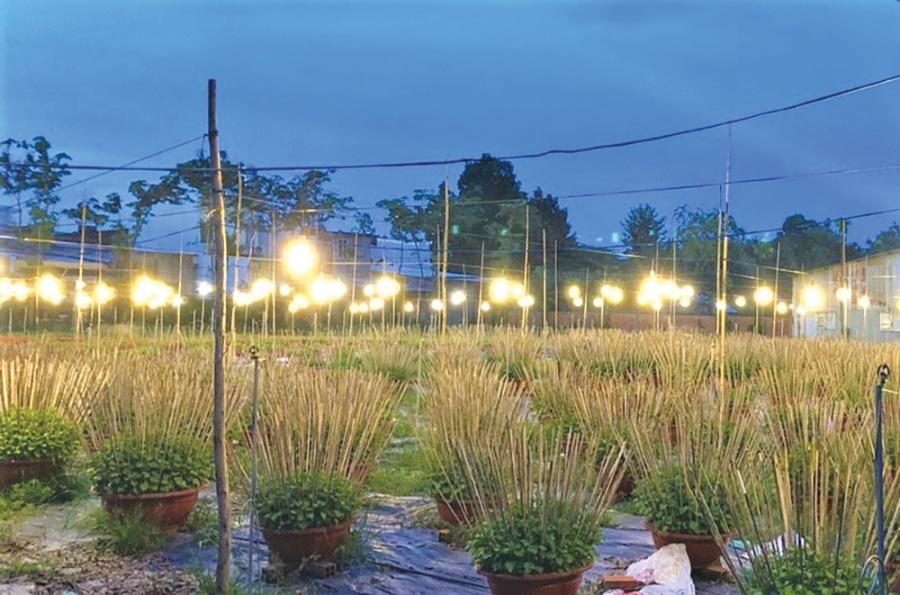 Chong đèn sáng giúp điều tiết thời điểm cúc pha lê ra hoa.